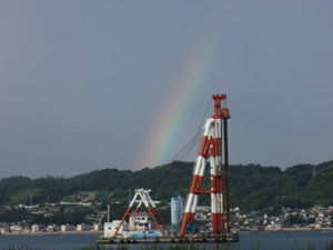夕方に虹がでていました。