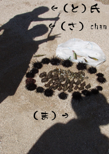 岩場でツブなどを捕獲していた(さ)ちゃんと(ま)は