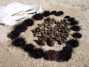 ウニをその場であけて拾い食いしたり