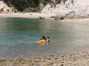 我が家の眼下の浜で(た)夫妻と海で戯れコトのひととき。
