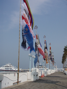 海沿いにはこいのぼりが元気よく泳いでいます。