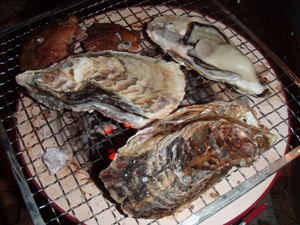そんな牡蠣を七輪で焼き牡蠣にしていただきました。