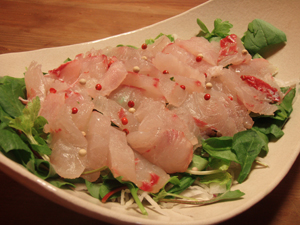 シーハンター(た)さんから頂いた、とれとれピチピチのチヌのお造り。