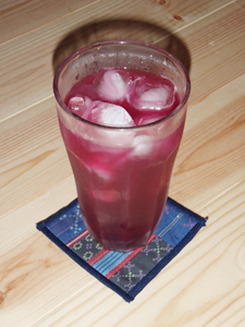 きれいな色のドラキュラジュースこと紫蘇ジュース。