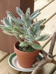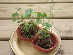 ウォーターマッシュルーム+素焼きのティアドロップ型器+ホーロー皿