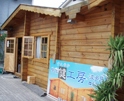 空本さんが自ら建てられたログハウスで整体院をされています。