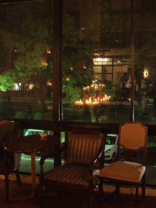 100米道路の木々と、硝子に映り込んだ蝋燭の灯りが