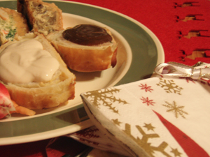 クリスマスムード満載なランチョンマットとペーパーナフキンは