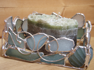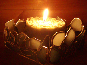 こんなんが出来上がりマシタ!ワタシのシーグラスキャンドルホルダーと組み合わせると、