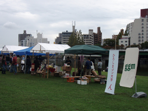 小雨ぱらつく中、基町ポップラ(POP'La)通りで開催された