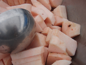 かぶれるからってコトで、師匠が皮を剥いてきてくださいました。