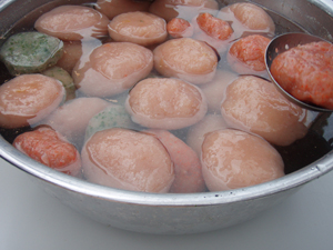 水をつけて丸めて、沸騰したお湯で30~60分煮たら~