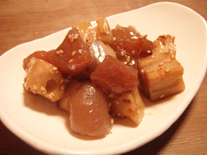 ノーマルのんと、一味入りのんと、れんこんとできんぴらにしてみました。
