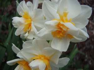 道端に咲く八重咲きスイセン。