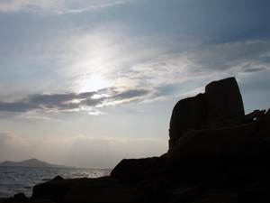 岩礁のシルエットと空。