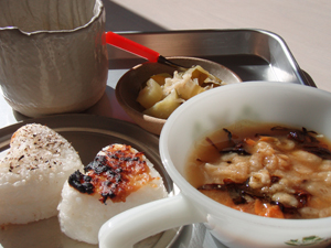 ハートの焼きおにぎりがラブリーだし、