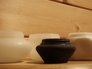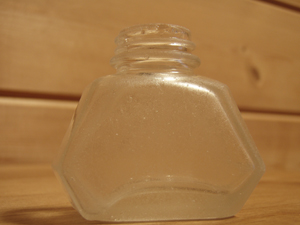 『るり羽』という毛染め液(ぴーちゃん調べによる)の入っていたビン。
