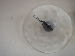森尾佳子さん作の?氷のようなガラスの時計。
