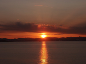そして、我が家からの沈み行く夕陽を眺めました。