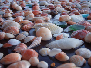 ついつい夢中になって貝殻拾いをしていると