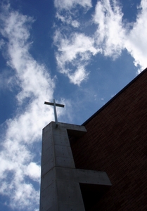 山の中に建物が連立するなかに現代的なチャペルがありました。