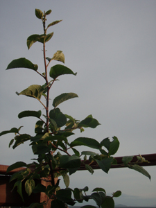 美味しい実が実るよう脇芽を切り、添え木をしました。