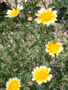 白と黄色が愛らしいのはシュンギクのハナ。
