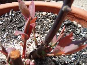 息絶えたと思われたブルーベリーが芽吹いてきました。