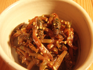 せっせとハカマをとり、ツクシのキンピラをこしらえました。