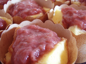 炊飯器米粉スフレケーキのイチゴコンポート添え