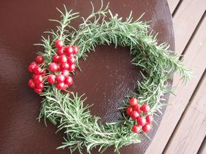 そして我が家のローズマリーでリースをこしらえて