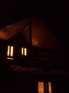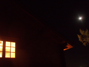 ログからもれる灯りと月あかりがやさしい。