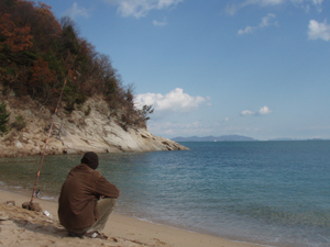 つり好き(て)が海を眺めるの図。