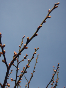 ウメのツボミが春を待ちわびてるように見えます。