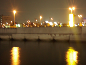 水面に写るライトが揺らめいてキレイ♪