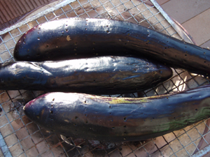 七輪で炭火焼した焼きナスはサイコー!