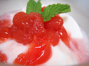 ヨーグルトに手づくりサクランボのコンポート♪